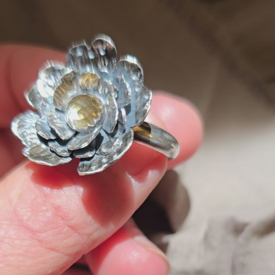 CITRINE FLOWER Ring | 925 Sterling Silver Rose Cut Citrine Large Flower Antique Oxidized Statement Ring
