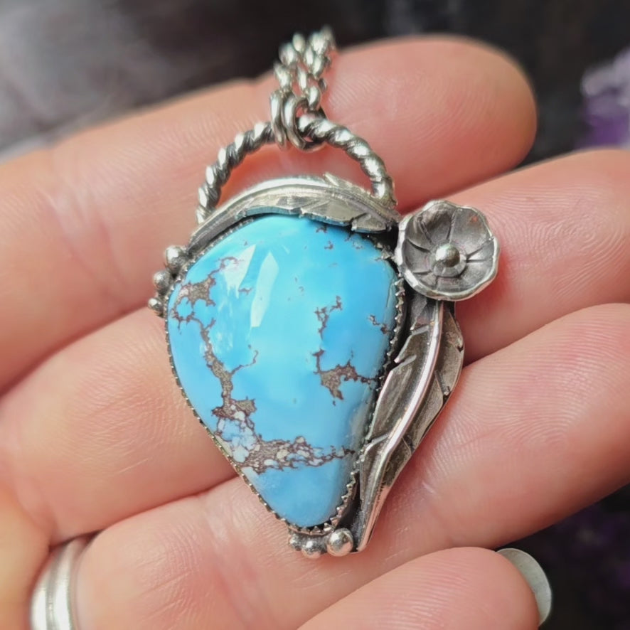 GOLDEN HILLS TURQUOISE Necklace | Fine & 925 Sterling Silver Handcrafted Genuine Untreated Authentic Blue Turquoise Feather Pendant Necklace
