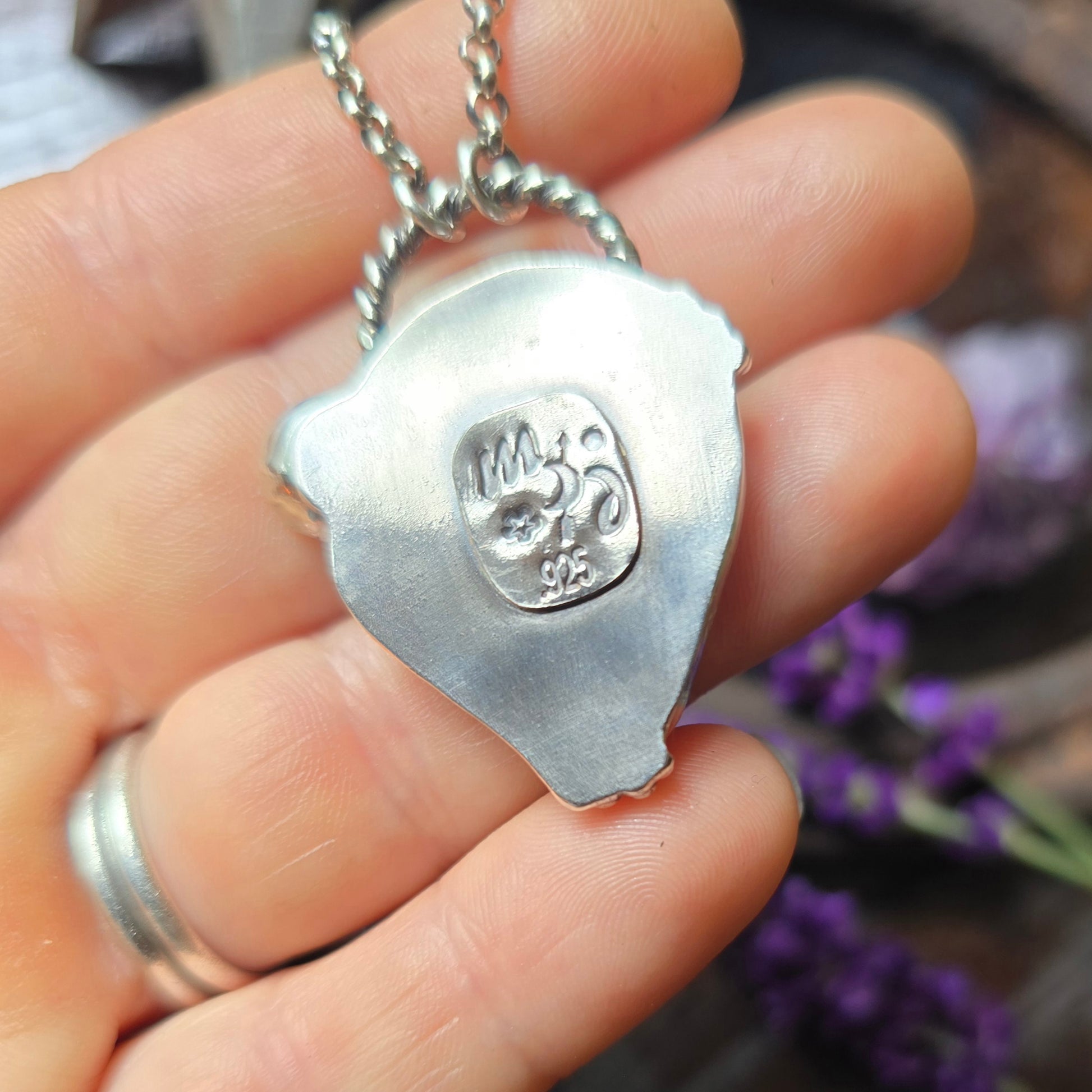 Rare & stunning Golden Hills turquoise is set in a handcrafted bezel constructed of fine & 925 sterling silver. This earth mined baby blue suspends from a meduim weight, sturdy rolo chain and finished with an easy swivel sprung lobster closure.